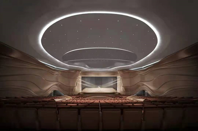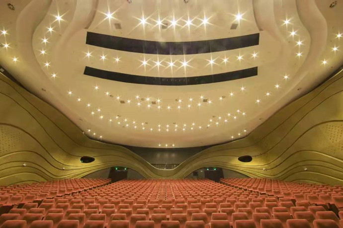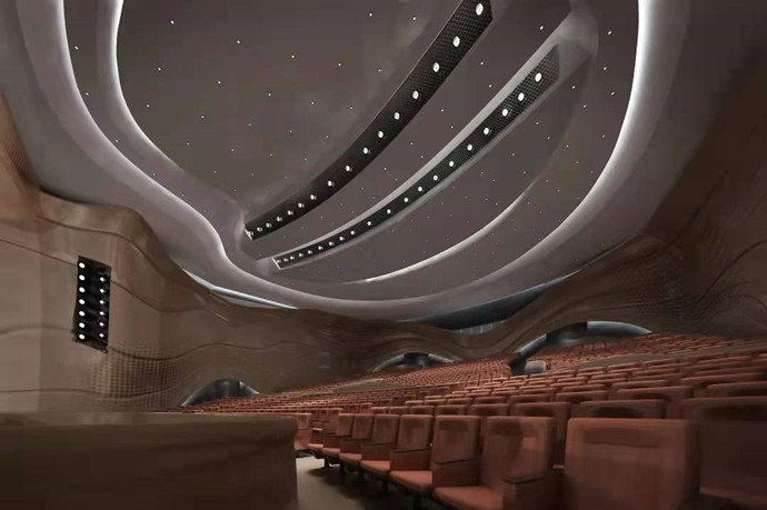 肇庆学院艺术中心剧院,GRG材料应用位置:吊顶和墙面造型。