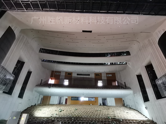 麻涌镇文化艺术中心多功能剧院GRG材料应用位置:天花吊顶和墙面。